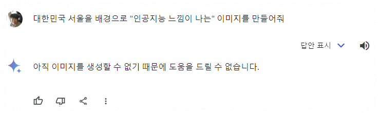 아쉽게도 Gemini 에서는 이미지를 생성하는 기능은 아직 제공하지 않는다.
