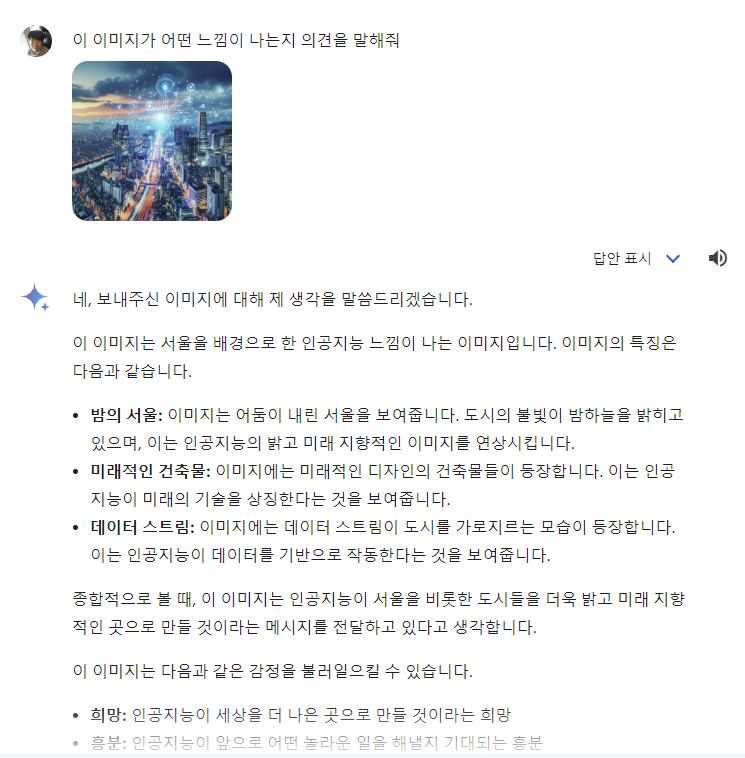 대신 사용자가 업로드한 이미지에 대한 의견을 제시하거나,