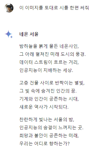 업로드한 이미지를 토대로 시를 써 달라고 할 수 있다.