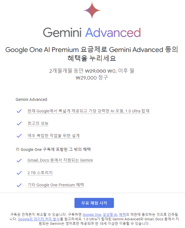 2달간 무료로 체험하고 유료로 전환되기 전에 취소하면 요금은 청구되지 않는다.